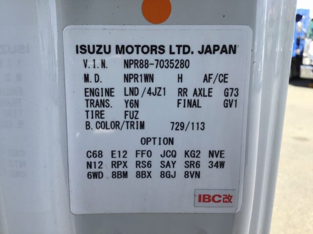 | 車台番号 | NPR88-7035280 | 最大積載量 | 2,750kg |