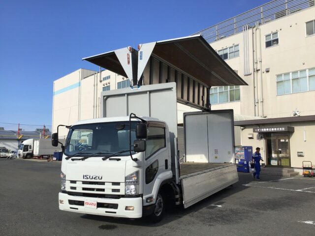平成25年式/いすゞフォワード/アルミウイング/フルハーフ製/ラッシングレール2段/ワイド/ベッドレス/6MT