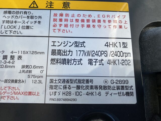| エンジン型式 | 4HK1 | キャブ形状 | ワイド・ベット付 |