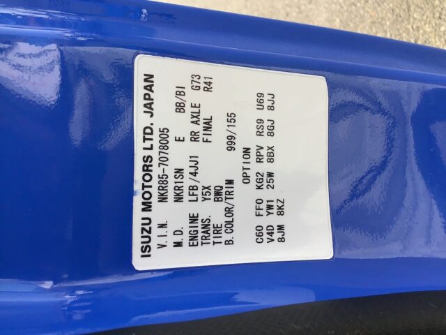 | 車台番号 | NKR85-7078005 | 最大積載量 | 3,000kg |
