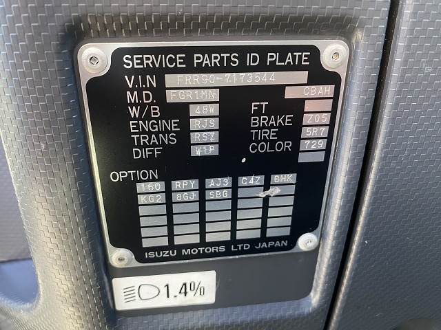 | 車台番号 | FRR90-7173544 | 最大積載量 | 2,850kg |