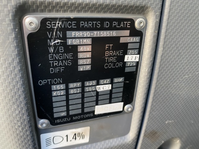 | 車台番号 | FRR90-7158516 | 最大積載量 | 2,800kg |